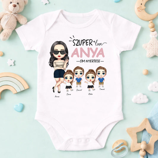 Szuperanya és gyermekek mintás póló – Személyre szabható – Ajándék anyák napjára #4190